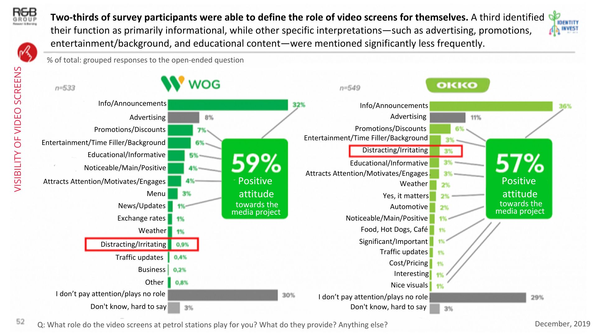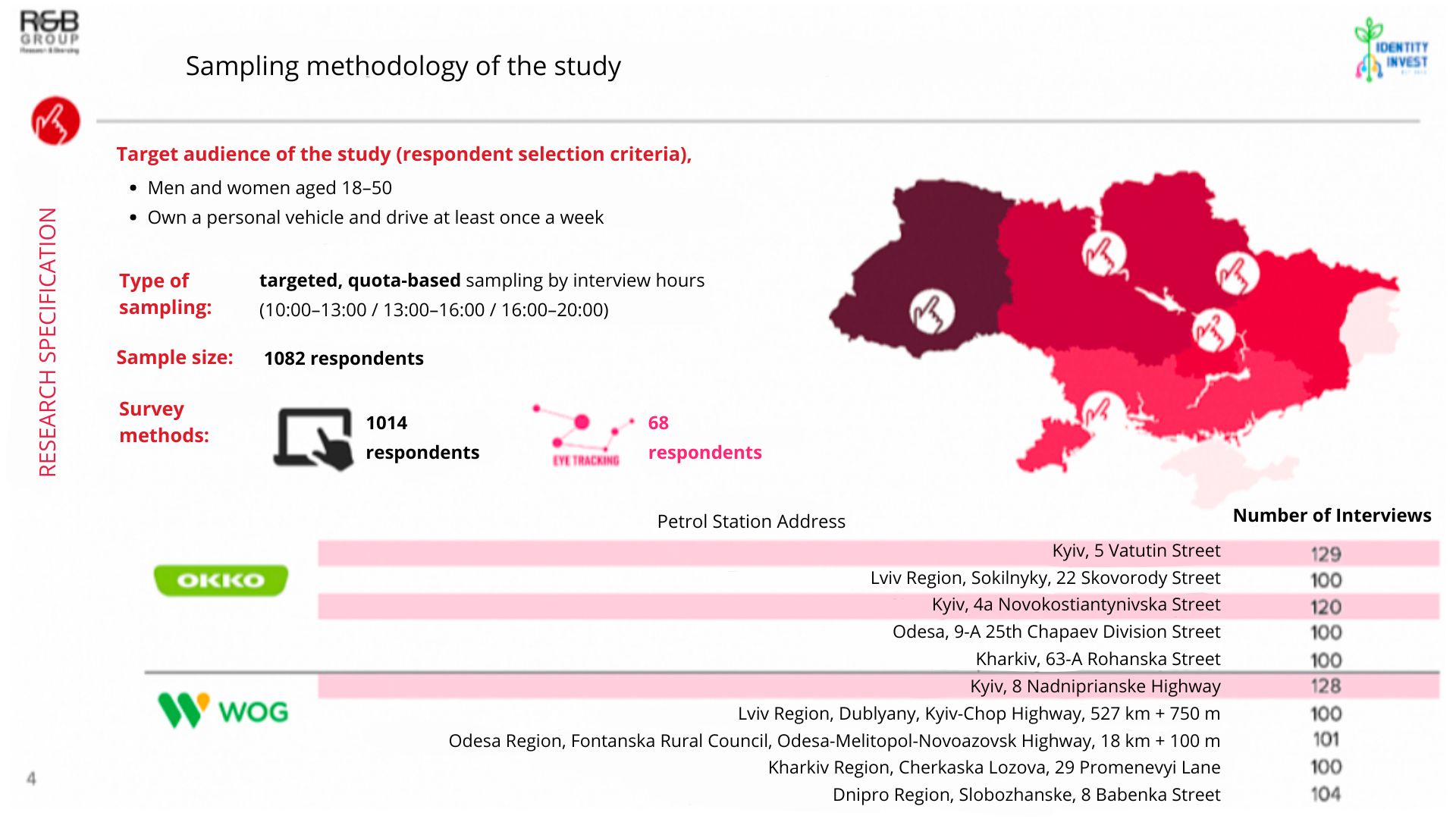 Our research includes not only surveys but also the eye-tracker methodology. This technology provides objective data on where and why respondents direct their attention, tracking gaze fixation and pupil movement. The sample covers all major cities with populations exceeding one million and accounts for different time parameters of fuel station visits. I am confident that this study will reveal the purchasing power of our visitors and demonstrate how effectively they engage with this media format.