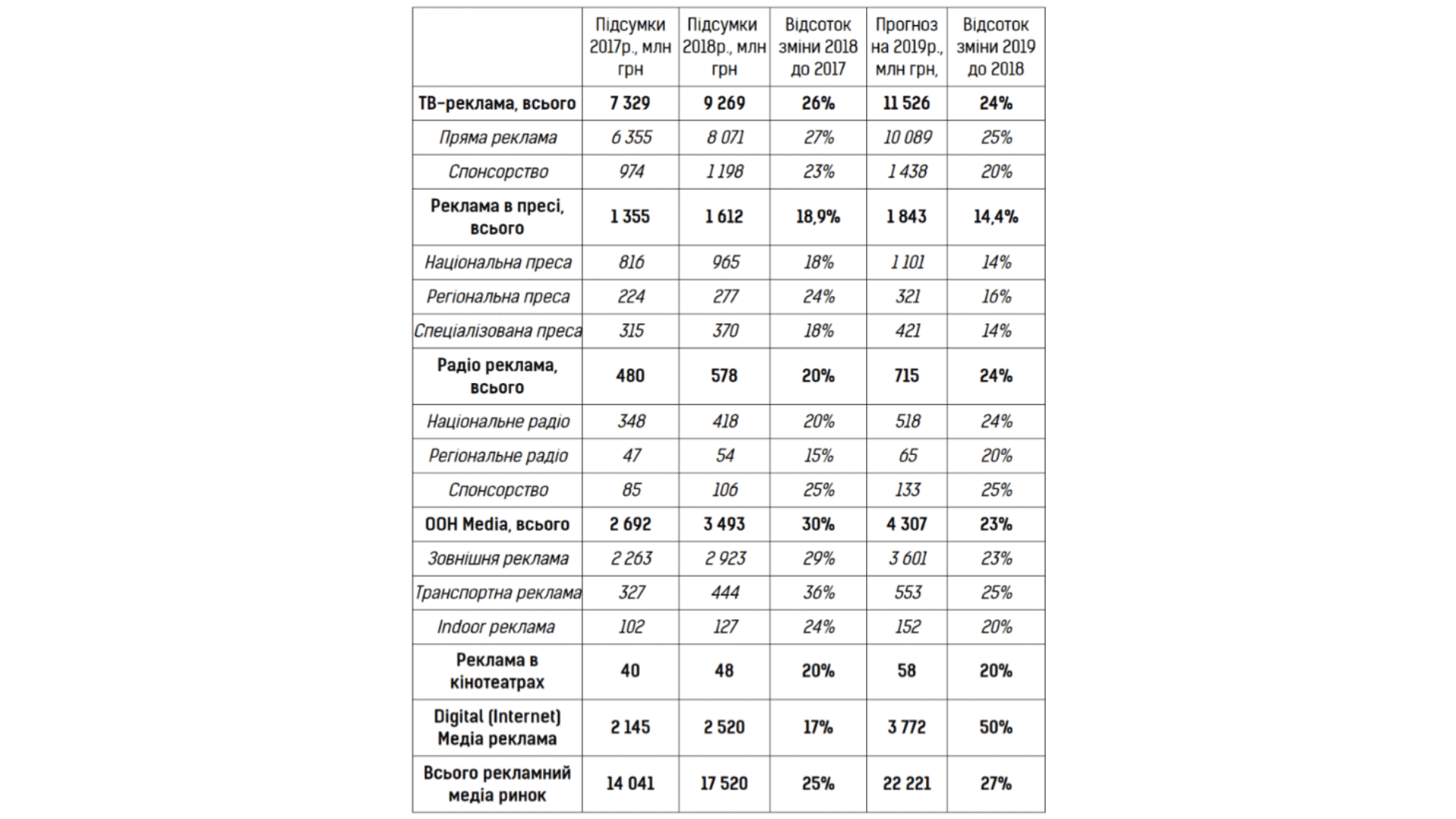 Десь 2,9 млрд грн — зовнішня реклама на бордах. Отже, до цієї суми потрібно додати витрати на друк, які впливають на фінансову ефективність усього медіаканалу та вартість контактів. За різними оцінками це становить від 10 до 20 % від бюджету розміщення, усе залежить від формату площини, якості друку та матеріалу, кількості запасних сюжетів (вони можуть випадково порватися). Якщо дуже грубо й тільки реклама на бордах — це десь 470–500 млн грн. на рік.