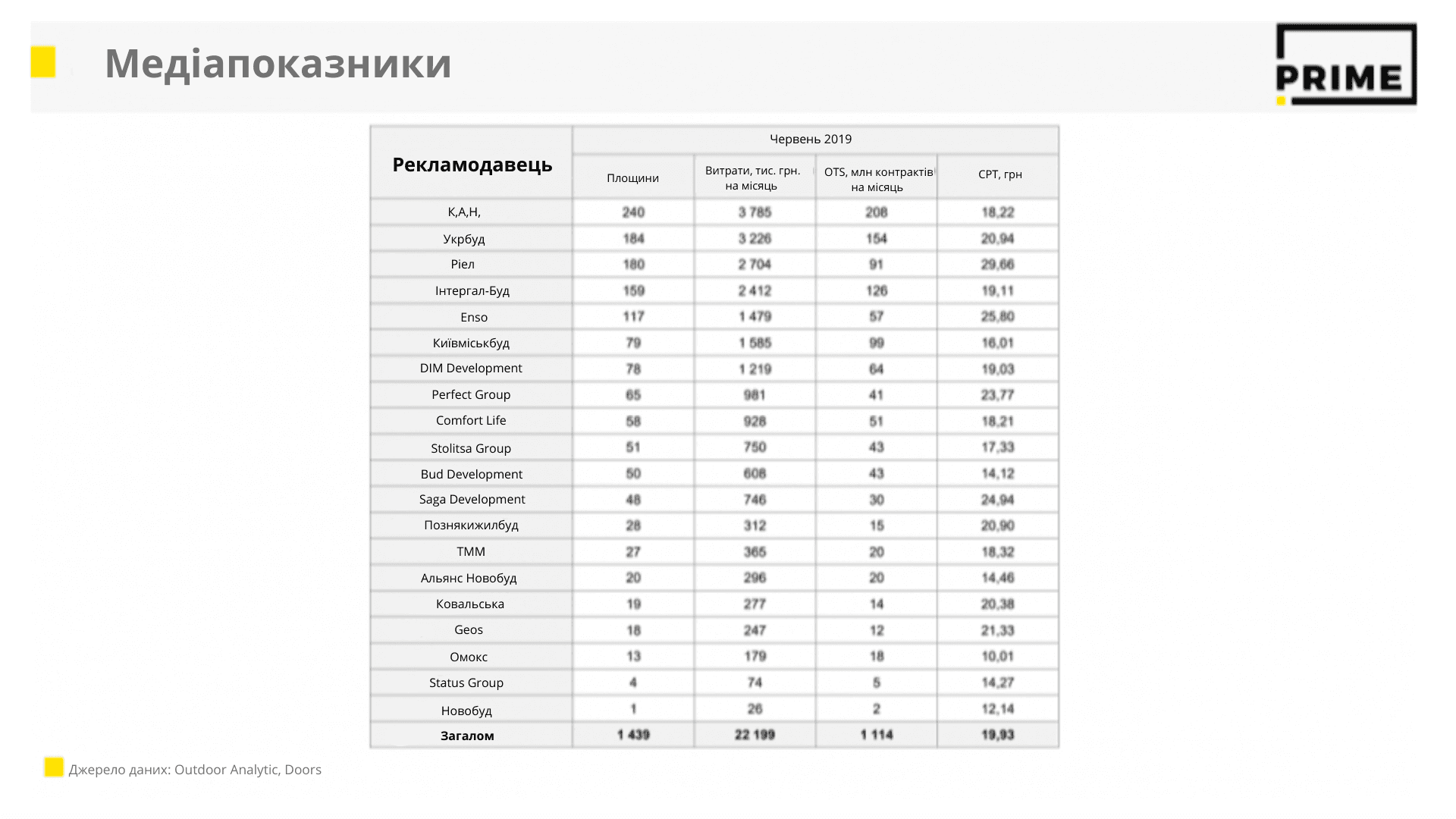 3. Прайм груп (категорійний звіт Outdoor, липень 2019: Телеком, Нерухомість Київ) — https://www.prime-group.com.ua/ru/kategoriynyie-otchetyi