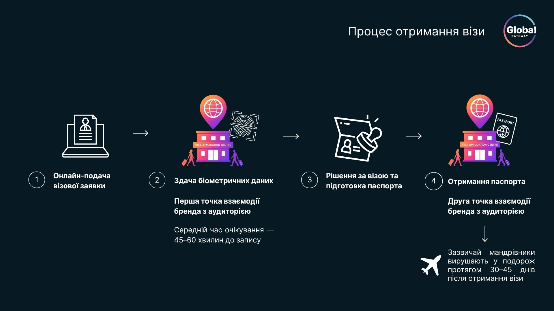 Крім того, заявники переважно планують поїздку протягом 30–45 днів після схвалення візи, тож це аудиторія з підтвердженим наміром подорожі, яка ще приймає важливі рішення про покупки.