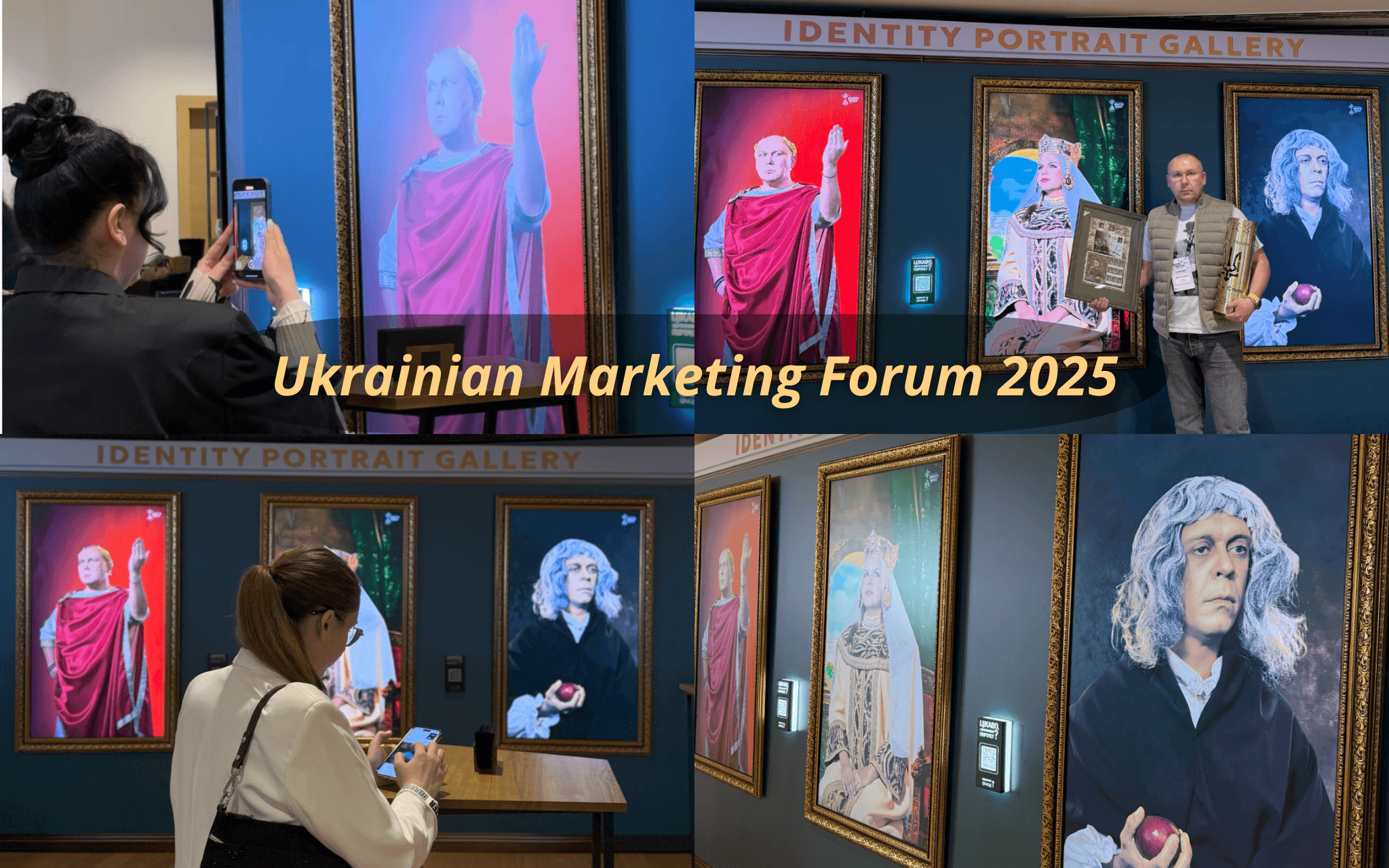 The concept? A portrait gallery — but alive. Inspired by the National Portrait Gallery in London, we reimagined ordinary digital screens as living portraits — with Olga of Kyiv, Isaac Newton, and Julius Caesar as the stars — and built the entire stand as a gallery space.