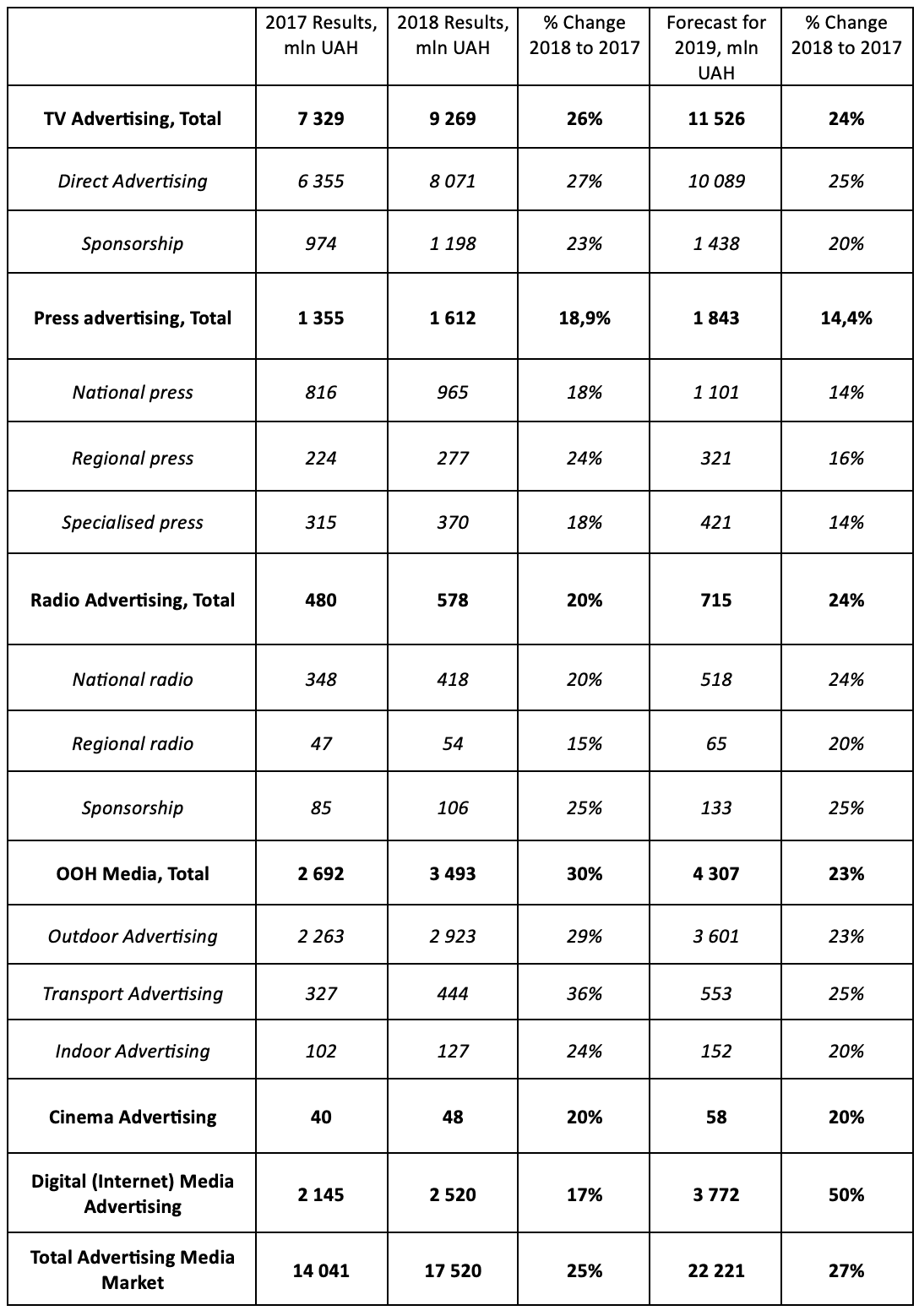 So, the total investment in static outdoor advertising, including printing costs, amounts to around 3.35 billion UAH, or roughly a fifth of the ad spend pie! The rest is just "pennies": Transport (444 million UAH) and Indoor (127 million UAH).