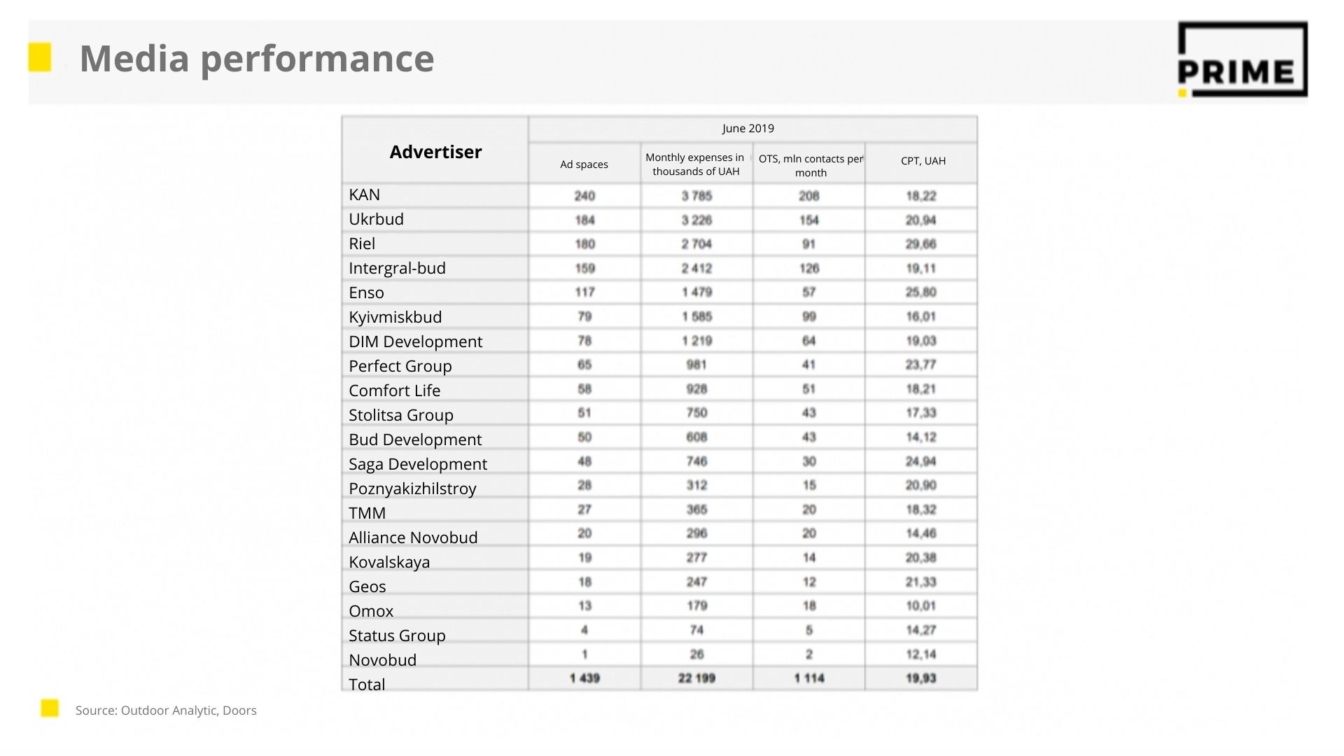 Prime Group (Category report on Outdoor, July 2019: Telecom, Real Estate Kyiv)